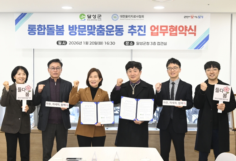 [경북도민방송=손중모 기자]달성군은 지난해 7월 대구시 최초로 통합돌봄 TF팀을 구성하여 통합돌봄 시범사업을 추진해 왔다. 달성군에 따르면 통합돌봄 지원사업은 노쇠나 장애 등으로 거동이 불편한 주민이 시설이 아닌 ‘집’에서 건강한 일상을 이어갈 수 있도록 보건의료, 일상돌봄, 주거환경 개선 서비스를 연계 지원하는 것이 핵심이다. 군은 시범사업 기간 동안 돌봄이 필요한 대상자를 발굴해 약 200건의 서비스를 연계했으며, 현재도 지원 대상을 지속적으로 확대하고 있다. 군은 오는 2026년 3월 본격 시행을 앞두고 달성군형 맞춤 통합돌봄 브랜드 ‘들다봄’을 선보인다. ‘들여다보다’의 대구 방언인 ‘들다보다’에서 착안한 명칭으로, 대상자를 자세히·함께·자주 살피겠다는 의미를 담았다. 군은 이를 통해 예방 중심의 내실 있는 통합돌봄 체계를 구축한다는 방침이다.‘건강을 들다봄니다’ 장기요양 재택의료센터 시범사업 추진 달성군은 의료 접근성이 떨어지는 장기요양 대상자를 위해 ‘장기요양 재택의료센터 시범사업’을 추진한다. 의사, 간호사 및 사회복지사가 가정을 직접 방문하여 의료서비스를 제공하는 사업으로, 달성군 유가읍 소재 ‘이웃집한의원’과 업무협약을 체결하고 사업을 진행한다. 물리치료사가 방문해 맞춤운동을 지도하는 ‘방문맞춤운동’도 추진한다. 달성군은 시범사업을 추진하며 예방적 돌봄의 중요성을 느끼고 (사)대한물리치료사협회 대구시회와 업무협약을 체결했다. 위 사업을 통해 개인별 신체기능을 평가하고 필요한 운동을 설계 및 지도하며 대상자의 건강 유지를 도모할 계획이다.‘일상을 들다봄니다’ 식사·가사지원, 주거환경개선사업 등 추진 달성군은 일상생활 전반에 대한 통합돌봄도 지원한다. 거동이 불편하여 식사 준비에 어려움을 겪는 대상자에게 식사를 배달하는 ‘식사지원서비스’, 청소·빨래 등 가사활동을 지원하는 ‘가사지원서비스’, 안전과 편의를 위해 주거환경 시공을 제공하는 ‘주거환경개선사업’ 등 3억 원의 예산을 편성하여 통합돌봄 특화 사업을 추진한다. 최재훈 달성군수는 “예방이 가장 ‘경제적인 돌봄’이다. 어르신의 건강이 악화되기 전에 미리 돌봄을 제공하면 병원비 지출도 줄이고 어르신의 고통도 줄일 수 있음을 시범사업을 추진하며 느낄 수 있었다”며 “우리 군은 복지뿐만 아니라 보건, 인사, 조직 등 모든 부서가 함께 통합돌봄을 준비해 왔으며, 모든 군민이 가정에서 건강하고 안전하게 살아갈 수 있도록 ‘들다봄’ 통합돌봄 지원사업을 추진하겠다”고 말했다. 한편 달성군은 병원동행서비스, 응급안전안심서비스, 방문건강관리, 다제약물관리, 노인맞춤돌봄서비스 등 기존 보건·의료·복지 사업을 유기적으로 연계해 통합돌봄 체계가 현장에서 안정적으로 작동하도록 지속적으로 보완해 나갈 계획이다.