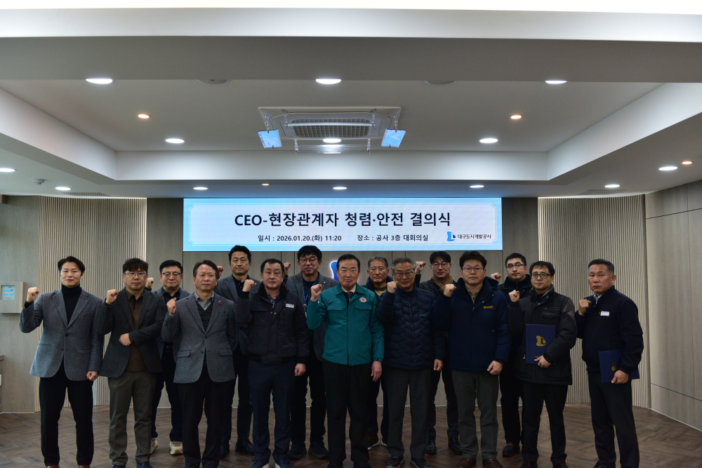 [경북도민방송=이종환기자] 대구도시개발공사가 새해를 맞아 형식적인 선언을 넘어선 현장 중심의 청렴·안전 경영 의지를 분명히 했다.대구도시개발공사는 지난 20일 오전 11시 20분 본사 회의실에서 정명섭 사장 주재로 ‘청렴·안전 결의식’을 개최하고, 주요 공사 현장의 안전·청렴 실태를 직접 점검했다.