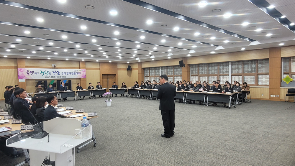 [경북도민방송=이종환기자] 경산시는 23일 시청 대회의실에서 열린 확대간부회의에서 간부 공무원 70여 명을 대상으로 공직선거법 교육을 실시했다.이번 교육은 선거를 앞두고 공직자의 정치적 중립 의무를 다시 한번 점검하고, 행정 집행 과정에서 발생할 수 있는 선거법 위반 행위를 사전에 예방하기 위해 마련됐다.이날 교육은 경산시선거관리위원회 관계자가 강사로 나서 실제 적발된 사례를 중심으로 ▲공무원의 선거 관여 금지 사항 ▲선거 시기별 제한·금지 행위 ▲SNS 활용 시 유의점 ▲현장에서 놓치기 쉬운 위반 사례 등을 설명했다.특히 주요 정책 결정과 행정 집행을 담당하는 간부 공무원들이 참석한 만큼, 정책 홍보와 행사 추진 과정에서 선거법에 저촉될 수 있는 모호한 사례들을 중심으로 실무적인 이해를 높였다.시는 이번 교육을 계기로 전 직원을 대상으로 선거법 안내 자료를 배포하고, 자체 점검을 강화하는 등 공직기강 확립에 나설 방침이다.조현일 경산시장은 “공직자의 엄정한 선거 중립은 시민 신뢰의 출발점”이라며 “모든 공직자가 선거법을 철저히 준수해 공정한 행정이 이뤄지도록 하겠다”고 말했다.