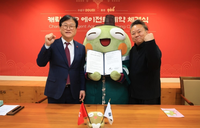 [경북도민방송=손중모 기자]대구 수성구는 지난 22일 수성구청에서 홍콩 글로벌 마케팅·라이선싱 전문기업 OBG(Oasis Group Asia)와 수성구 대표 캐릭터 ‘뚜비’의 정식 지식재산권(IP) 에이전트 계약을 체결했다고 밝혔다.이번 계약은 지난해 12월 홍콩 국제 콘텐츠 행사(HKICS 10) 참가와 2025 우수문화상품(K-Ribbon) 프로모션을 계기로 체결된 양측 간 의향서(MOU)를 바탕으로 성사됐다. 단순 홍보나 교류를 넘어, 해외 라이선싱 사업을 통해 발생하는 수익을 로열티로 환수하는 구조의 정식 수익 계약이라는 점에서 정책적 의미가 크다.이날 체결식에는 김대권 수성구청장을 비롯해 OBG 최고운영책임자(COO) 패트릭 청(Patrick Cheung), 홍콩 현지 파트너사 관계자 등이 참석했으며, 체결식 이후에는 홍콩을 거점으로 한 IP 라이선싱 확대, 콘텐츠 협업, 문화관광 연계 사업 추진 방안에 대한 논의도 함께 진행됐다.OBG는 홍콩과 중국을 중심으로 25년 이상 광고·브랜딩·라이선싱·이벤트·디지털 콘텐츠 분야에서 활동해 온 글로벌 에이전시로, 이번 계약을 통해 뚜비 캐릭터의 홍콩·마카오 시장 내 라이선싱 및 사업화를 전담하게 된다.특히 이번 계약을 통해 수성구는 홍콩 현지에서 발생하는 캐릭터 라이선싱 및 콘텐츠 사업 수익에 대해 지속적인 로열티 수익을 확보하게 된다. 공공 캐릭터가 해외 시장을 대상으로 수익 구조를 전제로 한 정식 계약을 체결한 사례는 매우 드물다는 점에서 주목된다.수성구는 이번 계약을 계기로 공공 캐릭터를 단순 행정 홍보 수단을 넘어 도시 브랜드 경쟁력을 높이는 핵심 문화산업 자산으로 육성하고, 향후 확보되는 로열티 수익을 지역 경제 활성화와 콘텐츠 산업 육성, 도시 이미지 제고에 재투자할 계획이다.김대권 수성구청장은 “이번 계약은 공공 캐릭터 정책이 실제 해외 계약과 수익으로 이어질 수 있음을 입증한 의미 있는 성과”라며 “지자체 IP 정책의 새로운 기준을 제시한 사례로, 앞으로도 수성구만의 독자적인 캐릭터 경험을 통해 도시 브랜드 가치를 한층 끌어올리겠다”고 말했다.한편, 뚜비는 전국 최대 두꺼비 산란지인 망월지의 생태적 가치를 알리기 위해 제작된 수성구 대표 캐릭터로, 이번 홍콩 계약을 통해 지역 생태 자산이 글로벌 수익형 IP로 확장되는 성과를 만들어가고 있다.