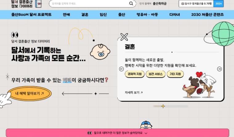 [경북도민방송=손중모 기자]대구 달서구는 결혼에서 출산·육아까지 생애 단계별 정책 정보를 쉽고 빠르게 전달하기 위해, 통합 정보 플랫폼 `달서 결혼출산 정보 다이어리`와 연계한 수요자 맞춤형 정보 안내 서비스 ‘링크-Talk 서비스’를 시행한다. ‘링크-Talk 서비스’는 출생 또는 혼인 신고 시 정보 이용에 동의한 주민에게 `달서 결혼출산 정보 다이어리` 플랫폼 접속 링크를 문자로 발송하는 서비스다. 흩어져 있던 결혼‧출산‧양육 관련 정책 정보를 한 번의 클릭으로 확인할 수 있도록 한 생활밀착형 안내 방식이 특징이다. 해당 서비스는 2025년 12월부터 출생신고 가정을 대상으로 우선 시행됐으며, 2026년 1월부터는 혼인신고 가정까지 안내 대상을 확대해 운영하고 있다. 이를 통해 신고 직후부터 필요한 정책 정보를 적시에 안내받을 수 있어 주민 편의성이 크게 높아질 것으로 기대된다. 연계된 `달서 결혼출산 정보 다이어리` 플랫폼은 결혼·임신·출산·영유아·아동·다자녀 등 생애 단계별 정책 정보를 체계적으로 제공하고 있다. 특히 AI 기반 맞춤형 검색 기능을 통해 개인 상황에 맞는 정책을 쉽게 찾을 수 있으며, 각 정책별 신청 페이지로 바로 연결되는 외부 링크를 제공해 정보 탐색부터 신청까지 원스톱으로 지원한다. 한편, 달서구는 더 많은 주민이 플랫폼을 손쉽게 이용할 수 있도록 관내 23개 동 행정복지센터 민원창구에 ‘QR 홍보 보드’를 설치했다. 민원 업무 처리 중 QR코드를 스캔하면 즉시 플랫폼에 접속할 수 있어, 현장에서 자연스럽게 정책 정보를 확인할 수 있도록 했다. 이태훈 달서구청장은 “주민이 꼭 필요한 정책 정보를 놓치지 않고 전달하는 것이 행정의 역할”이라며, “앞으로도 소통 중심의 디지털 행정서비스를 강화해 결혼‧출산‧양육이 행복한 도시, 달서구를 만들어가겠다”고 말했다.