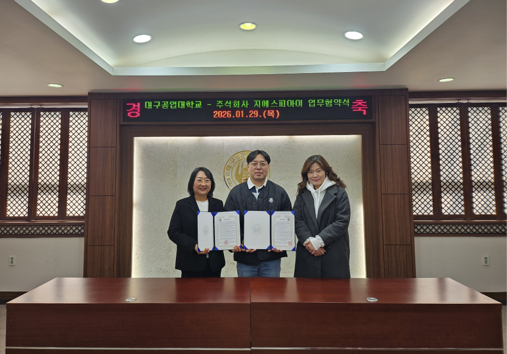 지역 산업 수요에 부합하는 실무형 인재 양성을 목표로 한 산학협력 강화 차원이다.이번 협약에 따라 양 기관은 △산업 현장 맞춤형 인재 양성 △AI·스마트 기술 기반 교육 및 연구 협력 △학생 현장실습과 취·창업 연계 △산학 공동 프로젝트 및 기술 교류 등 다양한 분야에서 협력 체계를 구축하기로 했다.협약식에는 대구공업대학교 골프레저과 김경희 학과장과 안선숙 교수, ㈜지에스피아이 이산복 대표 등이 참석했다.
