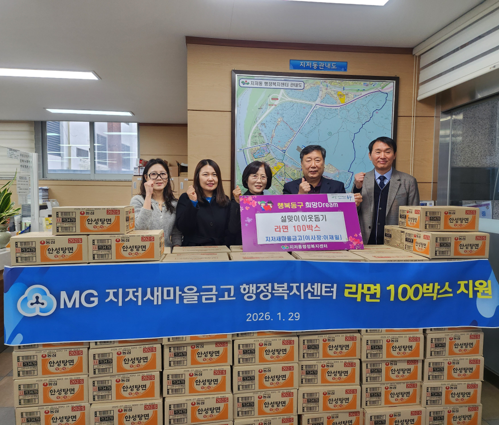 전달된 물품은 각 동 행정복지센터를 통해 도움이 필요한 가정에 배부될 예정이다.이재일 이사장은 “민족 대명절 설을 맞아 어려운 이웃들에게 조금이나마 도움이 되기를 바라는 마음에서 라면을 기탁하게 됐다”며 “앞으로도 지역사회와 함께하는 나눔 활동에 적극 동참하겠다”고 말했다.석재춘 지저동장은 “매년 명절마다 잊지 않고 온정의 손길을 보내주신 지저새마을금고에 진심으로 감사드린다”며 “기탁받은 물품은 도움이 필요한 분들께 소중히 전달하겠다”고 밝혔다.한편, 지저새마을금고는 명절 나눔과 지역 복지 지원 등 다양한 사회공헌 활동을 통해 지역사회 상생에 힘쓰고 있다.