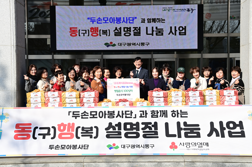 매년 설과 추석 등 명절마다 자원봉사단체와 연계해 음식을 만들어 나누며, 저소득 어르신들이 따뜻한 명절을 보낼 수 있도록 지원하고 있다.윤석준 동구청장은 “추운 날씨에도 어려운 이웃을 위해 따뜻한 나눔을 실천해 주신 정미자 단장과 두손모아봉사단원 여러분께 깊이 감사드린다”며 “앞으로도 주민 모두가 온정을 느낄 수 있는 지역사회를 만들기 위해 지속적인 노력과 지원을 아끼지 않겠다”고 말했다.동구청은 앞으로도 민관 협력을 통해 취약계층 돌봄과 생활 안전을 강화하고, 명절마다 체감할 수 있는 복지 지원을 이어갈 방침이다.