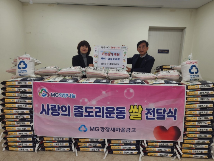[경북도민방송=손중모 기자]대구 서구 내당1동 광장새마을금고(이사장 전진승)는 지난 5일 설 명절을 맞아 좀도리 운동을 통해 마련된 쌀 10kg 250포를 내당1동 관내 취약계층을 위해 기탁했다. 좀도리 운동은‘조금씩 덜어 어려운 이웃을 돕는다’라는 의미를 담은 새마을 금고의 대표적인 사회공헌 활동으로 매년 광장새마을금고는‘사랑의 좀도리 쌀’을 관내 취약계층을 위해 기탁하고 있으며, 올해도 기탁된 쌀은 설 명절을 맞아 관내 어려운 이웃과 경로당에 전달됐다. 전진승 이사장은 “작은 나눔이지만 설을 앞두고 어려운 이웃에게 조금이나마 도움이 되길 바라며, 앞으로도 좀도리 운동을 비롯해 다양한 사회공헌 활동을 지속해 나가겠다.”라고 말했다. 이정숙 내당1동장은 “매년 좀도리 운동에 자발적으로 참여해 주시는 모든 분께 감사드리며, 후원된 쌀은 취약계층이 따뜻한 설을 보낼 수 있도록 잘 전달하겠다고”고 밝혔다.