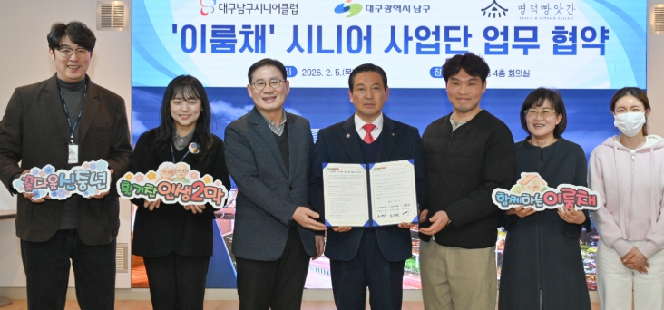 또한 사업을 통해 발생한 수익은 참여자 근로환경 개선과 직무역량 강화, 참여자 확대 등 공익적 목적에 우선 활용될 예정이다.조재구 남구청장은 “이번 협약은 시니어를 보호의 대상이 아닌 지역사회 성장의 주체로 바라보는 새로운 일자리 모델의 출발점”이라며 “앞으로도 이룸채를 중심으로 신중년과 시니어가 존중받고 지역과 함께 성장할 수 있는 지속 가능한 일자리 창출에 힘쓰겠다”고 말했다.남구청은 향후 민간 협력 기반의 시장형 시니어 일자리 모델을 확대해 고령사회에 대응하고, 지속 가능한 지역 일자리 생태계 구축에 나설 계획이다.