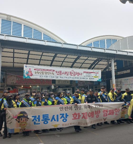 [경북도민방송=이종환 기자]경산남성·여성의용소방대는 민족 대명절인 설을 앞두고 2월 10일, 경산공설시장 일대에서 안전하고 따뜻한 명절 분위기 조성을 위한 ‘전통시장 화재예방 캠페인’을 실시했다.이번 캠페인은 설 연휴 기간 이용객이 급증하는 전통시장의 화재 위험 요인을 사전에 제거하고 상인과 시민들의 안전 의식을 높이기 위해 마련됐다. 행사에는 중앙119안전센터장, 경산남성·여성의용소방대원 33명이 참여했다.주요 활동내용은 점포 내 소방시설(소화기 등) 정상 작동 여부 확인, 겨울철 3대 난방용품(전기장판, 히터, 전기열선) 안전 사용 매뉴얼 배부, 소방차 진입로(길 터주기) 확보 훈련, 주택용 소방시설 설치 홍보, 단독주택 화재 피해 저감을 위한 ‘우리집 대피계획 세우기’홍보 등이다.특히, 점포가 밀집하고 통로가 좁아 화재 발생 시 대형 피해로 이어질 우려가 높은 전통시장의 특성을 고려하여, 상인들에게 자율적인 안전 점검을 독려하는 데 중점을 두었다.한창완 서장은 “전통시장은 화재 발생 시 초기 대응과 진입이 어려워 예방이 무엇보다 중요하다”며 “상인과 시민 모두가 화재 예방에 관심을 갖고 안전수칙을 준수하여 즐겁고 안전한 설 명절을 보내시길 바란다”고 전했다.