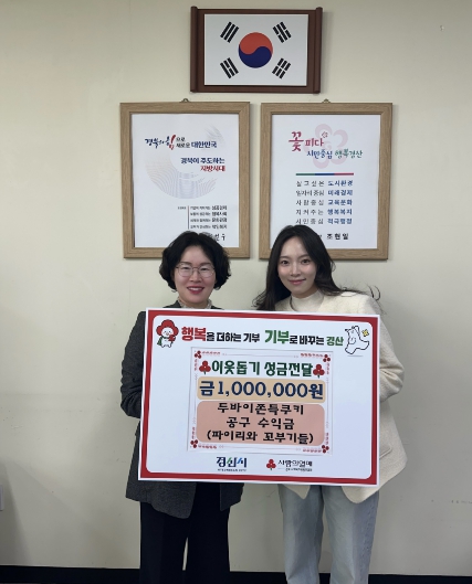 [경북도민방송=이종환 기자]경산시에 거주하는 동영상 크리에이터 김수진 씨가 지역 내 어려운 이웃을 돕기 위한 성금을 전달하며 따뜻한 나눔을 실천했다.경산시는 김수진 씨가 지난 13일 시청을 방문해 이웃돕기 성금 100만 원을 기탁했다고 밝혔다.이번 성금은 온라인 콘텐츠 활동을 통해 얻은 수익금 일부를 지역사회에 환원하고자 마련된 것으로, 도움이 필요한 취약계층 지원에 사용될 예정이다.김수진 씨는 “온라인 활동을 통해 얻은 수익을 지역사회와 나누고 싶었다”며 “작은 정성이지만 어려운 이웃들에게 따뜻한 위로가 되길 바란다”고 말했다.전현옥 복지정책과장은 “온라인 공간에서의 영향력이 지역사회 나눔으로 이어진 뜻깊은 사례”라며 “기탁된 성금은 경북사회복지공동모금회를 통해 도움이 필요한 이웃들에게 소중히 전달하겠다”고 밝혔다.한편 경산시는 민간 참여형 나눔 문화 확산을 위해 다양한 기부 활동을 연계·지원하며 지역사회 복지 안전망 강화에 힘쓰고 있다.
