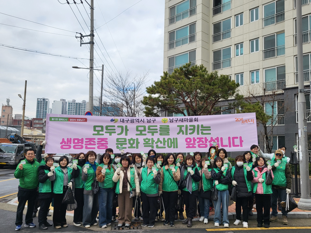 [경북도민방송=손중모기자] 대구 남구청은 지난달 25일 대명2동 일대에서 국민운동단체 주도의 생명존중 합동 캠페인을 전개했다고3일 밝혔다.이번 캠페인은 지역사회 자살 예방을 위한 생명존중 분위기 확산을 목표로 마련됐다.