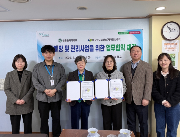 [경북도민방송=손중모 기자]대구 남구보건소 치매안심센터는 지난 4일 참좋은기억학교와 치매 예방 및 관리를 위한 업무협약(MOU)을 체결했다고 밝혔다.남구보건소 치매안심센터는 그동안 남부경찰서와 대한노인회 대구남구지회, 관내 노인종합복지관 등 유관기관과 협력체계를 구축해 지역 주민의 치매 예방과 관리를 위한 다양한 사업을 추진해 왔다.이번 협약을 맺은 참좋은기억학교는 대구시 특화 복지사업으로, 경증 치매노인을 대상으로 인지훈련과 재활 프로그램 등 신체·정신 건강 증진을 위한 예방적 서비스를 제공하는 기관이다.협약에 따라 양 기관은 △노인 대상 치매 조기검진 및 예방을 위한 대상자 연계 △치매 교육과 홍보활동 등 협력 네트워크 구축 △인지 건강 악화 시 치매안심센터와 상황 공유 등 치매 예방과 관리 강화를 위해 상호 협력하기로 했다.이명자 남구보건소장은 “이번 협약을 통해 남구 지역 치매 고위험군과 경증 치매 어르신의 인지 건강을 체계적으로 관리할 수 있을 것으로 기대한다”며 “앞으로도 치매로부터 안심할 수 있는 남구를 만들기 위해 지속적으로 노력하겠다”고 말했다.