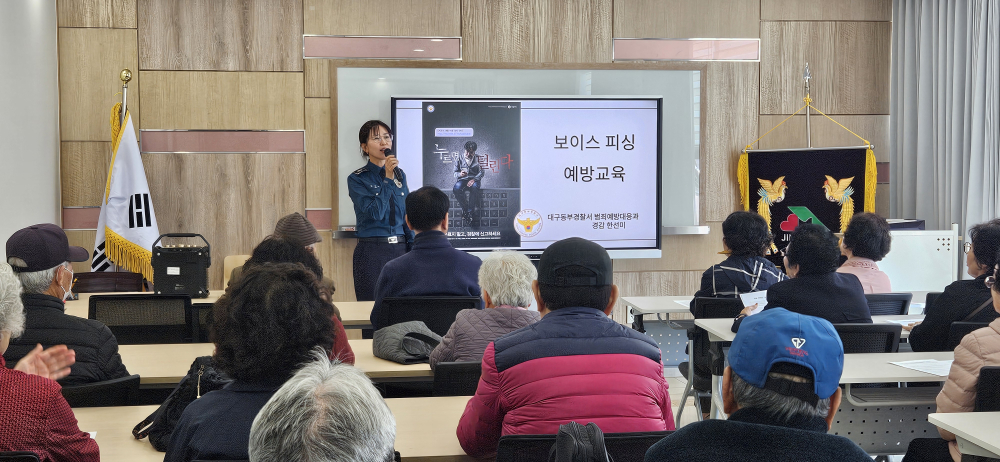 [경북도민방송=손중모기자] 대구동부경찰서는 강동노인복지관을 찾아 지역 어르신들을 대상으로 ‘기능별 합동 범죄예방교실’을 열고 교육을 실시했다고 19일 밝혔다.이번 교육은 어르신들이 일상에서 노출되기 쉬운 각종 범죄와 사고를 사전에 예방하기 위해 마련됐다.