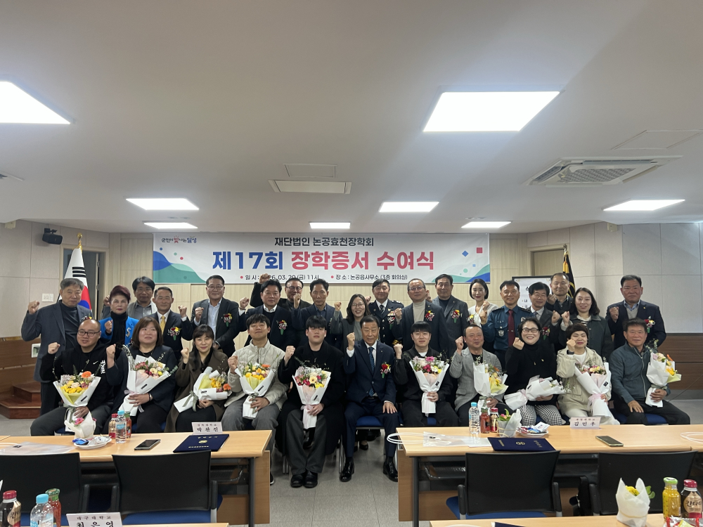 [경북도민방송=손중모기자] (재)논공효천장학회가 지역 학생들의 학업 지원에 나서며 인재 육성 기반을 다지고 있다.논공효천장학회는 지난 20일 논공읍 행정복지센터에서 장학회 임원과 장학생, 학부모 등 50여 명이 참석한 가운데 ‘제17회 장학증서 수여식’을 개최했다고22일 밝혔다.이날 수여식에서는 우수한 학업 성적과 성실한 품행을 갖춘 대학생 9명과 고등학생 2명 등 총 11명이 장학생으로 선발돼 장학증서와 함께 총 2천400여만 원의 장학금을 전달받았다.장학회는 앞서 지난 1~2월에도 지역 초·중학교 졸업생 6명에게 200여만 원을 지급하는 등 올해에만 총 17명의 학생에게 장학 혜택을 제공하며 지원 규모를 확대하고 있다.지역 기반 장학사업을 통해 학생들의 학업 지속을 돕고, 안정적인 성장 환경을 조성하는 데 의미를 두고 있다는 평가다.김무열 이사장은 “이번 장학금이 학생들이 꿈을 향해 나아가는 데 실질적인 힘이 되길 바란다”며 “앞으로도 지속적인 지원을 통해 논공 지역 학생들이 마음껏 역량을 펼칠 수 있도록 돕겠다”고 말했다.지역사회가 함께 만드는 장학 지원이 교육 기회 확대와 인재 선순환 구조 형성으로 이어질 수 있을지 주목된다.