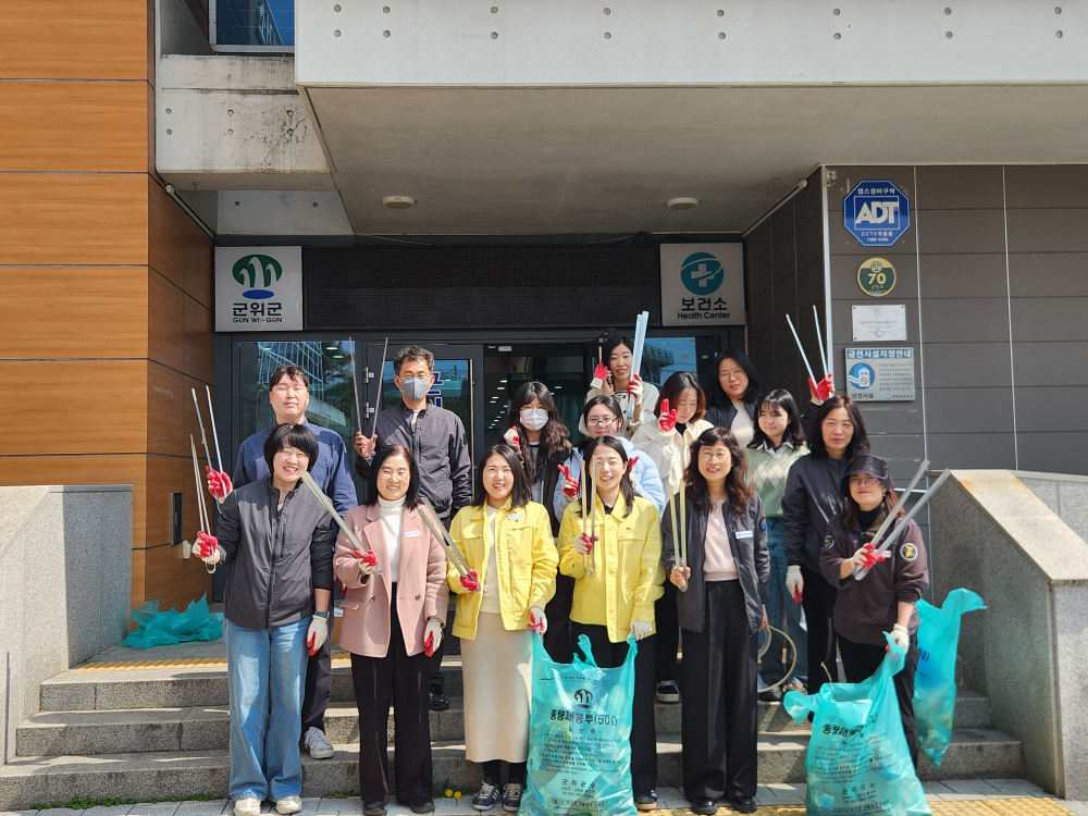 [경북도민방송=손중모기자] 군위군보건소가 새봄을 맞아 지역 환경 정비에 나서며 공공기관의 사회적 역할을 실천했다.군위군보건소는 군위군청의 새봄맞이 대청소 추진계획과 연계해 지난 26일 플로깅 봉사활동을 실시했다고 밝혔다.이날 봉사활동에는 보건소 직원 20여 명이 참여해 보건소 진입로와 주차장, 인근 도로 일대에 방치된 쓰레기를 수거하는 등 환경 정화에 힘을 보탰다.