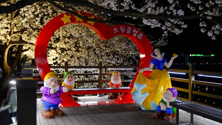 감성형 야경 콘텐츠를 앞세워 지역 브랜드 가치 제고에 나선 모습이다.성주군은 야간관광 특화사업 ‘트윙클 성주’의 일환으로 지역 대표 명소인 성밖숲 일원에 이색 테마 포토존과 야간경관 조명을 설치했다고 2일 밝혔다.새롭게 단장된 성밖숲 데크 산책로에는 벚꽃과 어우러지는 ‘참외덕후 백설공주’ 테마 포토존이 조성됐다.
