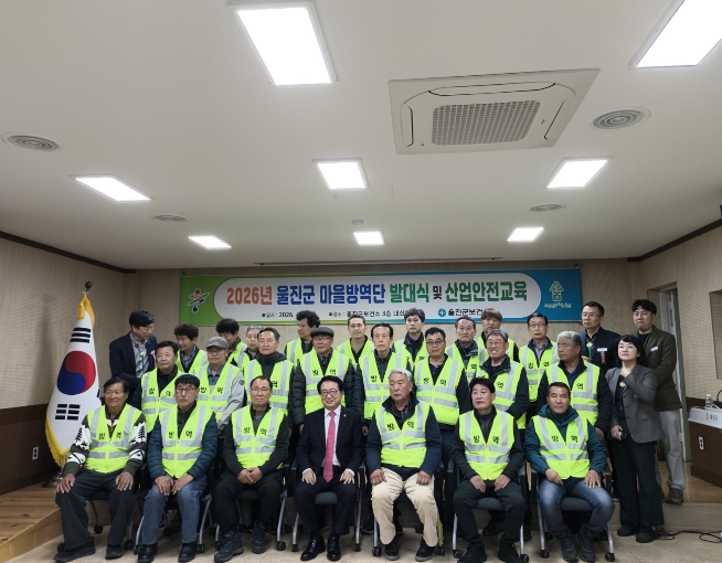 [경북도민방송=손중모 기자] 울진군은 2026년 4월 1일 보건소 3층 회의실에서 2026년마을방역사업 추진을 위한 산업안전교육과 발대식을 가졌다. 마을방역은 읍·면별 방역취약지역과 해수욕장 개장지역의 물웅덩이, 하수구 등의 모기 유충과 성충 구제를 위해 20명의 지역 사정을 잘 아는 방역 요원이 2026년 4월 1일부터 2026년 10월 30일까지 약 7개월간 마을별 233코스 주 1회 이상 방역 활동을 실시할 계획이다. 이날 발대식 및 교육은 산업안전과 방역 약제, 기계 사용법과 주의사항, 방제지리정보시스템 안내 등 실무에 도움이 되는 내용으로 구성됐다. 특히 이륜차나 고령 운전자가 대부분인 방역요원에게 울진경찰서 교통관리계에서 실제 사례를 들어가며 눈높이 도로교통안전교육을 실시해 참여자들로부터 박수를 받았다. 울진군보건소 관계자는 “마을방역단 근로자들을 격려하며, 세심한 방역과 울진군민의 감염병 예방 및 해충방역에 위해 힘써 줄 것”을 당부했다.