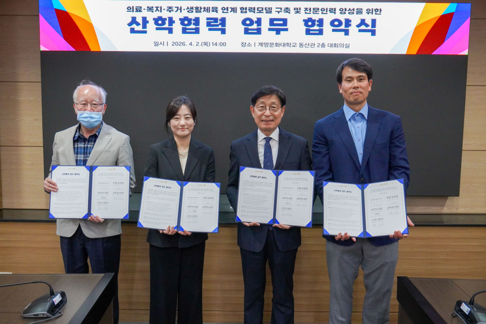 의료와 복지, 주거, 생활체육을 유기적으로 연결한 통합형 인재 양성 시스템을 통해 지역사회 돌봄 생태계 고도화에 속도를 낼 전망이다.계명문화대학교는 2일 동산관 대회의실에서 칠곡실버타운, 장미노인요양원, 산울림병원, 보라파크골프장 등 4개 기관과 의료·복지·주거·생활체육 연계 협력 모델 구축 및 전문 인력 양성을 위한 업무협약(MOU)을 체결했다.이번 협약은 단순한 산학협력을 넘어 고령화 시대 핵심 산업으로 부상한 실버산업 전반을 아우르는 ‘융합형 협력체계’ 구축에 방점을 찍고 있다.