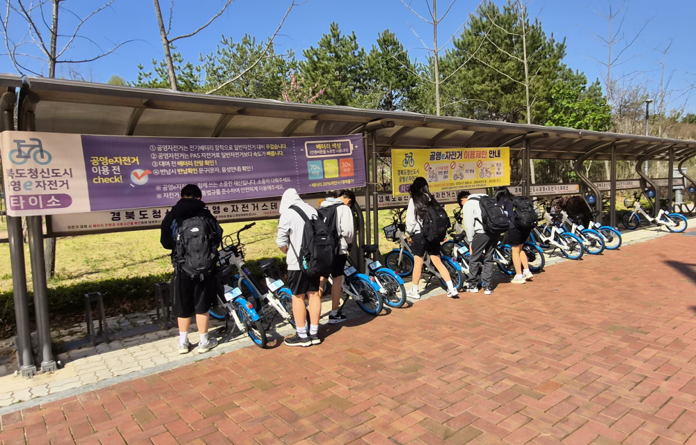 [경북도민방송=손중모기자] 경북 예천군이 운영 중인 ‘경북도청신도시 공영 e자전거’가 고유가와 공공기관 차량 2부제 시행 속에서 대안 교통수단으로 자리 잡고 있다.14일 예천군에 따르면 공영 e자전거는 최초 가입비 1천 원만 부담하면 하루 2시간까지 무료로 이용할 수 있어 신도시 주민들의 유류비 절감에 실질적인 도움을 주고 있다.특히 차량 2부제 시행 이후 출퇴근 시간대를 중심으로 경북도청과 경북개발공사, 교육청, 경북인재개발원 등 주요 공공기관 인근에서 이용률이 크게 증가한 것으로 나타났다.이용 패턴 분석 결과 평일 이용률이 주말보다 2배 이상 높은 것으로 집계돼 공영자전거가 출퇴근과 등하교 등 일상 이동 수단으로 적극 활용되고 있는 것으로 분석된다.현재 평일 기준 하루 평균 대여 횟수는 1,500회에 달하며, 전체 가입자 수는 신도시 인구의 절반을 넘는 1만6천 명 이상으로 집계됐다.