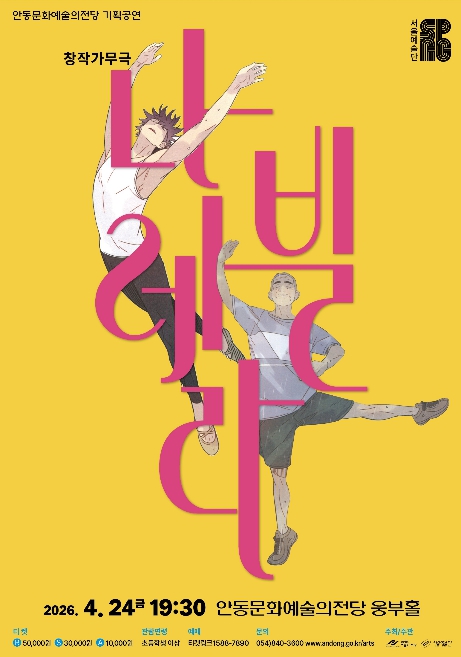 [경북도민방송=최진수 기자]안동문화예술의전당은 시민들에게 수준 높은 문화 향유 기회를 제공하고 지역 간 문화 격차를 해소하기 위해, 서울예술단의 대표 레퍼토리인 창작가무극 ‘나빌레라’를 오는 4월 24일 오후 7시 30분 웅부홀 무대에 올린다고 밝혔다.이번 공연은 동명의 웹툰을 원작으로 한 작품으로, 늦은 나이에 발레를 시작한 노인 ‘덕출’과 방황하는 청년 발레리노 ‘채록’의 만남을 통해 꿈과 도전, 그리고 삶의 의미를 따뜻하게 그려낸다. 서로 다른 세대가 예술을 통해 교감하고 성장하는 과정을 섬세하게 풀어내며, 관객들에게 깊은 공감과 감동을 전한다.공연을 맡은 서울예술단은 한국을 대표하는 국립예술단체로, 무용과 음악, 연극이 결합된 ‘창작가무극’이라는 독보적인 장르를 통해 한국적 정서를 현대적으로 재해석하며, 국내외에서 활발한 공연 활동을 이어오고 있다. 특히 이번 ‘나빌레라’는 발레의 우아한 몸짓과 한국적인 움직임, 감성적인 음악이 조화를 이뤄 원작의 감동을 시각적으로 극대화했다는 평을 받고 있다.안동문화예술의전당 관계자는 “이번 공연은 꿈을 향한 용기와 도전의 메시지를 전하며, 세대를 아우르는 공감과 위로의 시간을 선사할 것으로 기대한다”며, “앞으로도 품격 있는 공연을 지속적으로 유치해, 시민의 일상이 문화로 풍요로워질 수 있도록 최선을 다하겠다”고 전했다.