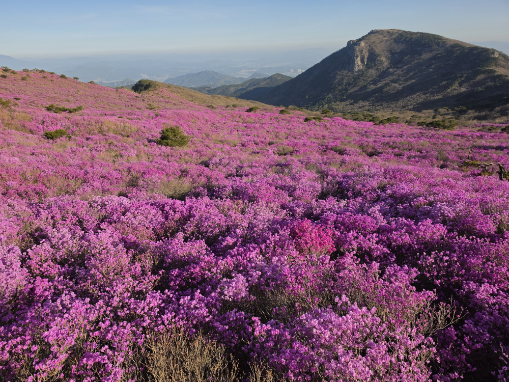 바람에 흔들리는 꽃군락 사이로 이어진 등산로는 자연이 빚어낸 거대한 꽃길을 형성하며 방문객들의 감탄을 자아냈다.서울에서 내려온 김모(34) 씨는 “축제 시작 전에 한적하게 보려고 왔는데 생각보다 사람이 훨씬 많다”며 “그래도 만개한 참꽃을 보니 힘들게 올라온 보람이 충분하다”고 말했다.대전에서 가족과 함께 찾은 이모(47) 씨도 “SNS에서 사진을 보고 왔는데 실제 풍경은 훨씬 더 압도적”이라며 “아이들에게도 좋은 추억이 될 것 같다”고 전했다.정상 부근에서는 사진 촬영을 위한 방문객들이 몰리며 곳곳에서 줄을 서는 모습도 연출됐다.