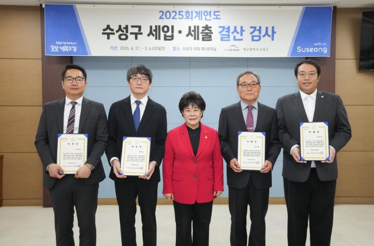 [경북도민방송=손중모 기자]대구 수성구의회는 4월 17일 의장실에서 2025회계연도 결산검사위원 위촉식을 개최하고 본격적인 결산검사에 착수했다. 이날 위촉된 결산검사위원은 총 4명으로, 정대현 의원(대표위원)을 비롯해 재정·회계 분야의 전문성을 갖춘 공인회계사 2명과 전직 공무원 1명으로 구성됐다.결산검사는 4월 17일부터 5월 6일까지 20일간 실시되며, 2025회계연도 일반회계 및 특별회계의 세입·세출 결산을 비롯해 기금, 재무제표, 채권·채무, 성과보고서 등 재정운영 전반을 대상으로 진행된다. 검사위원들은 예산 집행의 적정성과 재정운용의 건전성·효율성·투명성을 중점적으로 점검하고, 개선이 필요한 사항에 대해서는 구체적인 권고안을 포함한 결산검사의견서를 작성·제출할 예정이다.조규화 수성구의회 의장은 위촉식에서 “결산검사는 단순한 사후 점검을 넘어 향후 재정운영의 방향을 제시하는 중요한 환류 과정”이라며 “구민의 소중한 세금이 올바르게 사용됐는지 면밀히 살펴보고, 개선이 필요한 부분에 대해서는 건설적이고 합리적인 의견을 제시해 주시기 바란다”고 말했다. 이어 “균형 있는 시각과 책임감 있는 검사를 통해 보다 효율적인 재정운영의 기반을 마련해 주시기를 기대한다”고 덧붙였다.