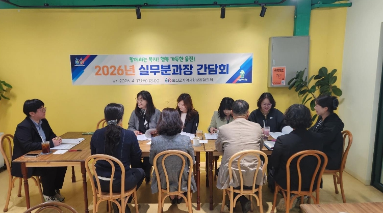 [경북도민방송=손중모 기자]울진군지역사회보장협의체는 지난 17일 알움인(성류굴점)에서 실무분과장 간담회를 개최했다. 이번 간담회는 실무협의체 위원장 주재로 진행됐으며 7개(46명) 실무분과의 분과장 및 총무 등 관계자들이 참석해 2025년 실무분과 운영 및 사업 추진 성과를 공유하고, 급변하는 복지 환경에 대응하기 위한 2026년 실무분과 활성화 방안을 논의했다. 특히 이날 분과별 특색을 반영한 특화사업 발굴이 중점적으로 다뤄졌다.