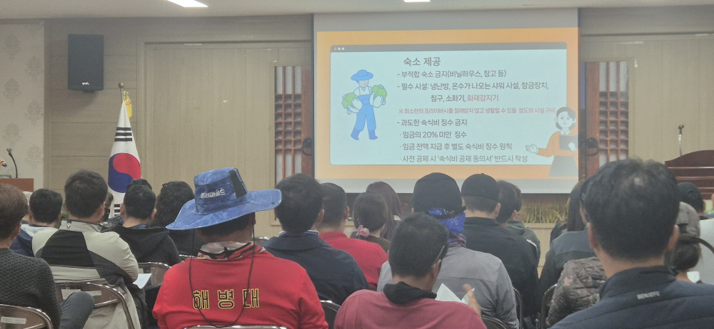 현장에서는 근로계약, 임금 지급, 근무시간, 응급상황 대처 요령 등에 대한 질의응답도 이어졌다.외국인 계절근로자 제도는 농번기 등 계절적으로 단기간 인력이 집중적으로 필요한 농촌 지역에 최대 8개월까지 합법적으로 외국인을 고용할 수 있도록 한 제도다.