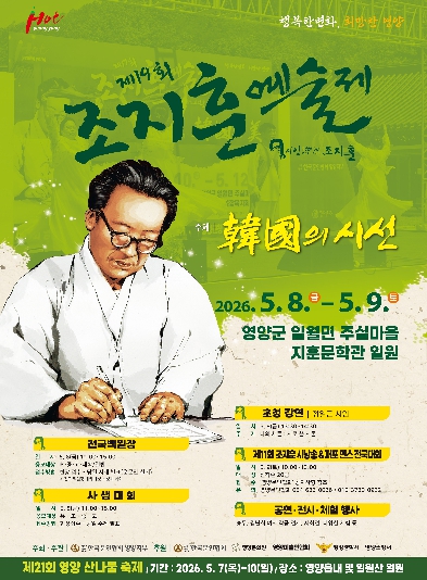 문학과 공연, 전시, 체험이 어우러진 종합예술 행사로 지역 대표 문화축제의 위상을 이어갈 전망이다.영양군은 오는 5월 8일부터 9일까지 이틀간 일월면 주실마을 일원에서 ‘제19회 조지훈 예술제’를 개최한다고 28일 밝혔다.
