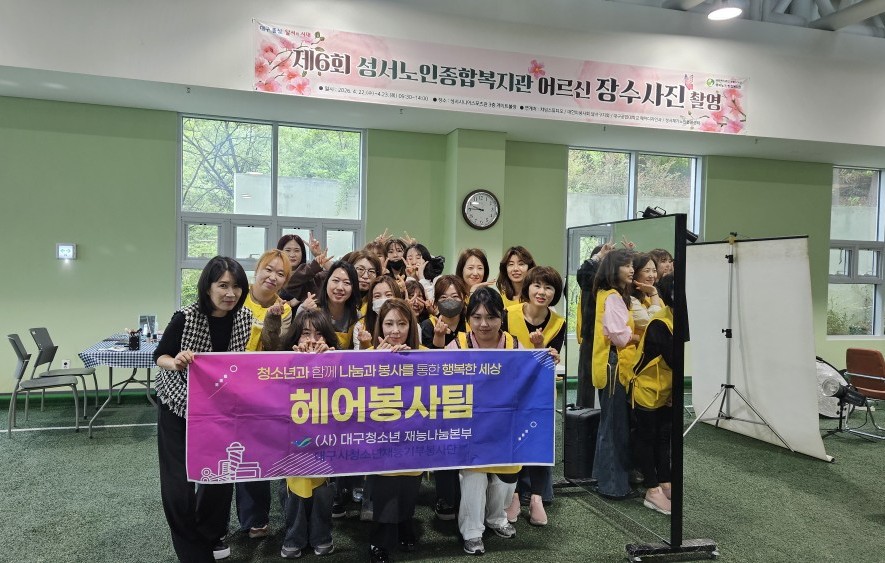 [경북도민방송=손중모기자] 대구공업대학교 헤어디자인과 학생들이 어르신들의 소중한 순간을 기록하는 장수사진 촬영을 지원하며 의미 있는 재능기부 활동을 펼쳤다.대구공업대학교는 지난 22일 성서노인종합복지관에서 헤어디자인과 학생 15명이 참여한 가운데 어르신 대상 ‘장수사진 스타일링 봉사활동’을 진행했다고28일 밝혔다.이번 봉사에서 학생들은 헤어 스타일링과 메이크업을 직접 맡아 어르신들이 보다 밝고 환한 모습으로 사진 촬영에 임할 수 있도록 도왔다.